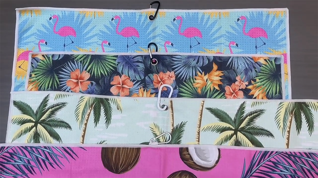Taşınabilir Polyester Yüceltilmiş Mikrofiber Waffle Klipsli Özel Baskı Golf Havlusu