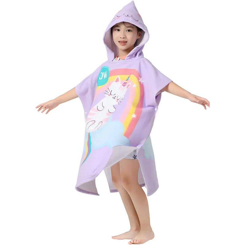 Mikrofiber Poncho Havlu, banyo havlu olarak kullanılmasının yanı sıra, plaj ponço olarak da kullanılabilir.Poncho tasarımı kolayca değiştirilmesine izin verir ve rahat bir, yüzme veya güneşlenme sonrası rahat bir örtü.